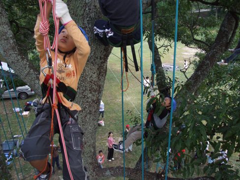 秋の森林セラピー体験イベント 森と遊ぼう〜木登り体験〜 2009-09-26 【カテゴリー】イベントレポート 【作成者】森林セラピー山口 平成21年9月26日(土)「秋の森林セラピー体験イベント 森と遊ぼう〜木登り体験〜」を行いました。 イベントの様子 概要 【日時】平成21年9月26日(土) 午前の部 9:30〜11:30 午後の部13:30〜15:30 【場所】国立山口徳地青少年自然の家(山口市徳地船路668) 【内容】長者ヶ原エリアの自然とともに、森の癒しを体験してみませんか。 ※専用のロープを使った木登り体験。運動しやすい服装でお越しください。 荒天時は内容を変更する場合があります。