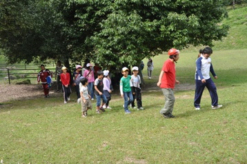 明るくゆかいなお話の中に、蜂への注意や、お話を聞くときのオッケーサインなど大切なことがいっぱい。みんなで耳を傾けます。